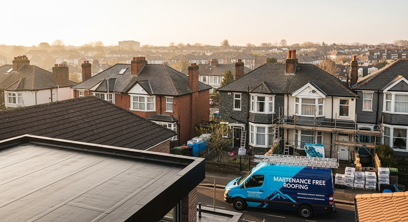 We’re here to help with your next roofing project. Maintenance Free Roofing delivers high‑quality new roofs, flat roofing and long‑lasting repairs across Liverpool, Merseyside, and Warrington. With over 30 years of experience, we handle everything from replacement flat roofs and full re‑roofs to smaller repair projects, on time and on budget.
